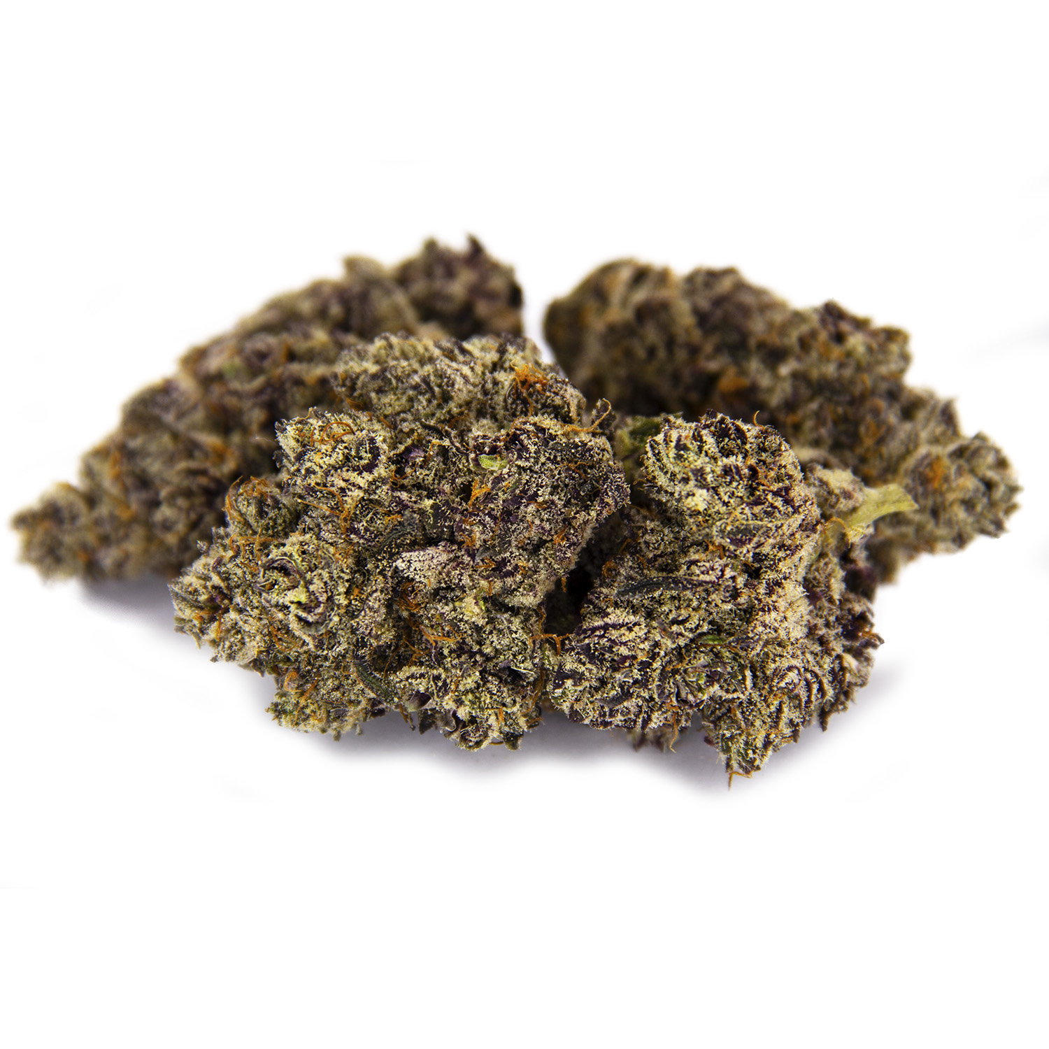 Detroit Diesel, also known as “Dieselrella,” is a slightly sativa dominant hybrid strain (60% sativa/40% indica) created through crossing the classic NYC Diesel X Cinderella 99 strains. When it comes to the aroma of this bud, the name says it all. Detroit Diesel packs a heavy pungent diesel overtone that intensifies in sour citrusy lemon zest the more that you toke. The flavor isn’t quite as heavy, with a sour citrusy lemon taste that’s accented by a punch of black pepper and spicy diesel. Almost as soon as you experience your final delicious exhale, you’ll be hit in the face with a giddy and high-flying euphoria that boosts your mood and has you soaring into the stars, filled with sociability. This heady state will soon go from energetic to totally sedated, dropping you off into a sleepy space where you’ll remain out of touch for hours and hours on end. Combined with its high 25-29% average THC level, these effects make Detroit Diesel a great choice for treating chronic fatigue, depression, chronic stress and headaches or migraines. This bud has fat dense but fluffy christmas tree shaped deep purple nugs with dusty undertones, thin orange hairs and a coating of tiny, milky white crystal trichomes.